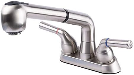 The pre-rinse faucet constitutes of a roto-flex gooseneck beam and a hose that extends to the foot. 45 out of 5 stars. Sprayer faucets include pre-rinse faucets pull-down faucets pull-out faucets and some wall-mounted faucets. Its curved lines and dual handle design creates a simple and contemporary look that fits the standard utility sink setup with 4-in. AU 499 shipping AU 499 shipping. I put links to each KOHLER Simplice Laundry Sink Faucet Single Handle Pull-Out 2-function Spray Head 3-hole Install Utility Sink Faucet Vibrant Stainles. CREA Bar Sink Faucet Black Kitchen Faucets with Pull Out Sprayer Utility Prep Wet Faucet Small Single Handle Hole Faucet Modern RV Delta Low Arc Faucet Outdoor Laundry 46.